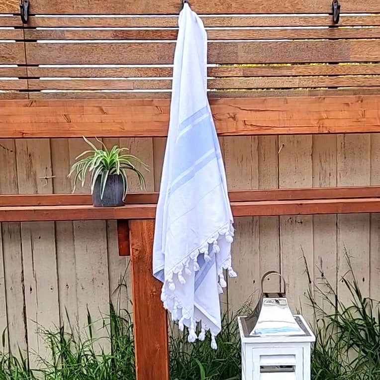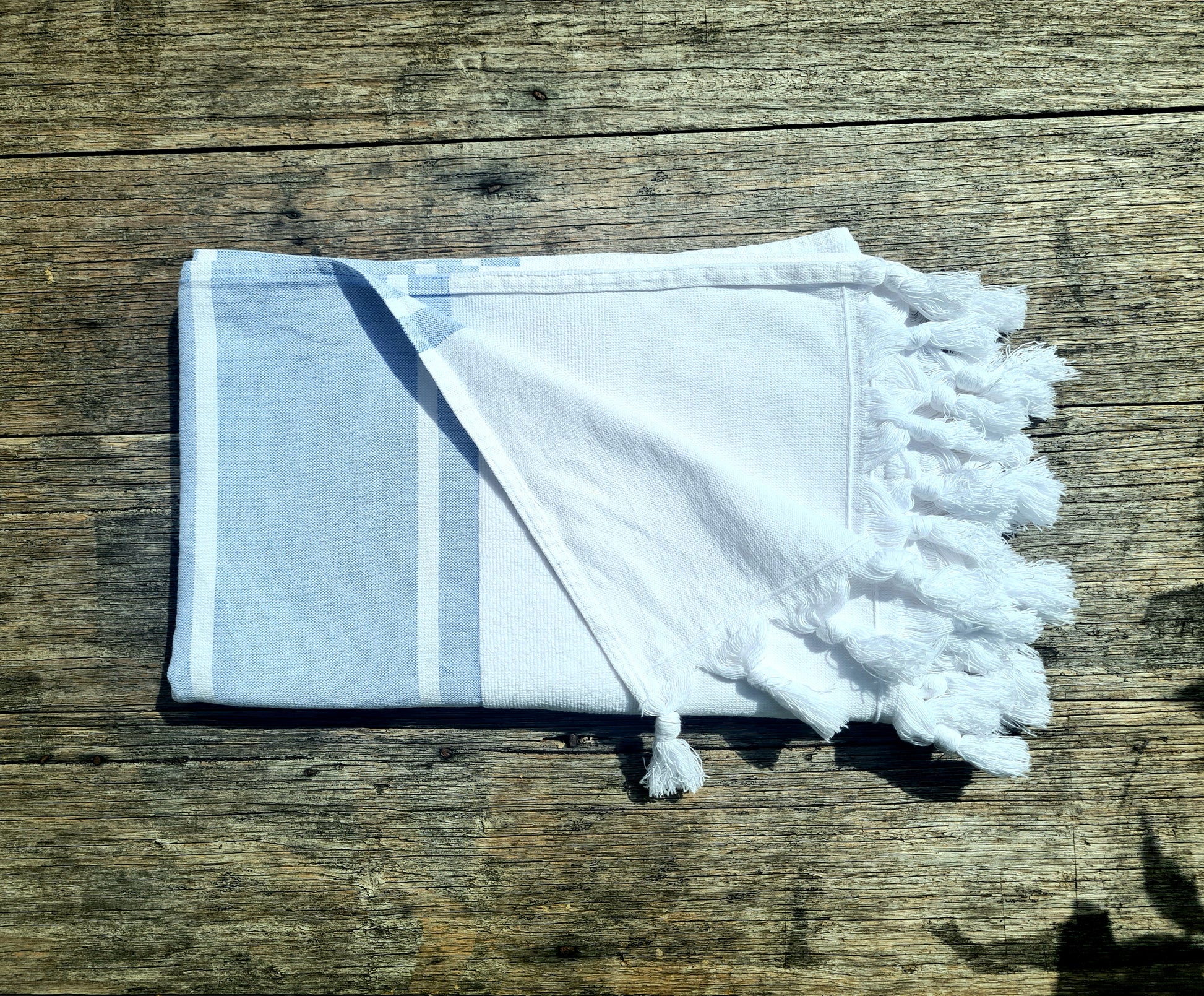 This beautiful prewashed towel is made in Turkey on power looms, featuring tassels that are individually hand tied. The stripes and tassels embody fun-in-the-sun for your beach or pool adventures. Super durable, this towel will become softer and more absorbent with each wash. Lighter than our cabana towels, it's just the perfect weight to bring along in your suitcase.